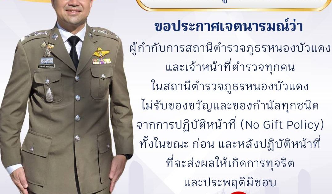 สภ.หนองบัวแดง ประกาศนโยบายต่อต้านการรับสินบน (Anti-Bribery) และการไม่รับของขวัญของกำนัล